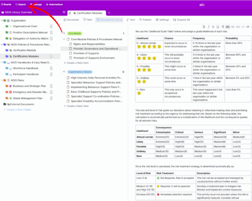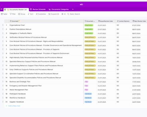 This Document Library is a comprehensive and organised board designed to streamline and simplify the management of all the documents used by your organisation.