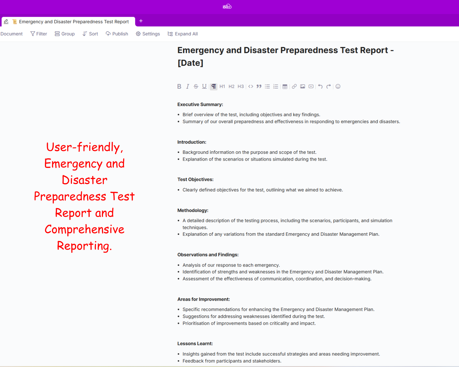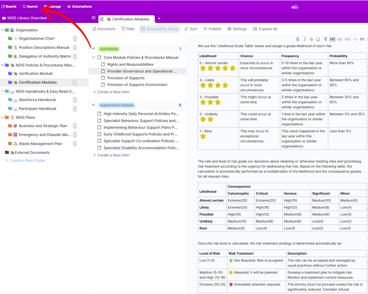 This module helps organisations manage the creation, updating, and control of documented information, such as Policies, Procedures, Plans, Work Instructions, and Handbooks.