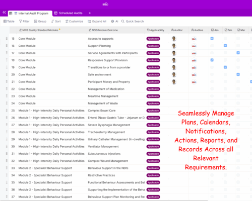 This module supports structured oversight and ensures compliance via audits, reviews, and reporting. It also helps manage legal obligations, conflicts of interest, and continuous improvement to meet NDIS standards.