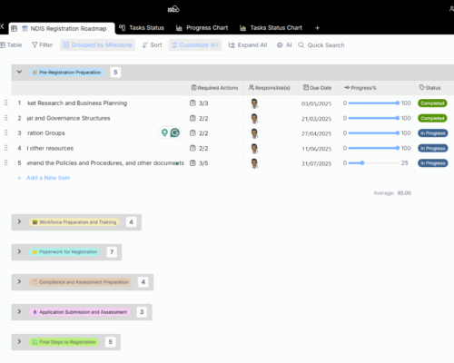 This module helps providers determine and manage the required tasks of NDIS registration as a project through an end-to-end roadmap.