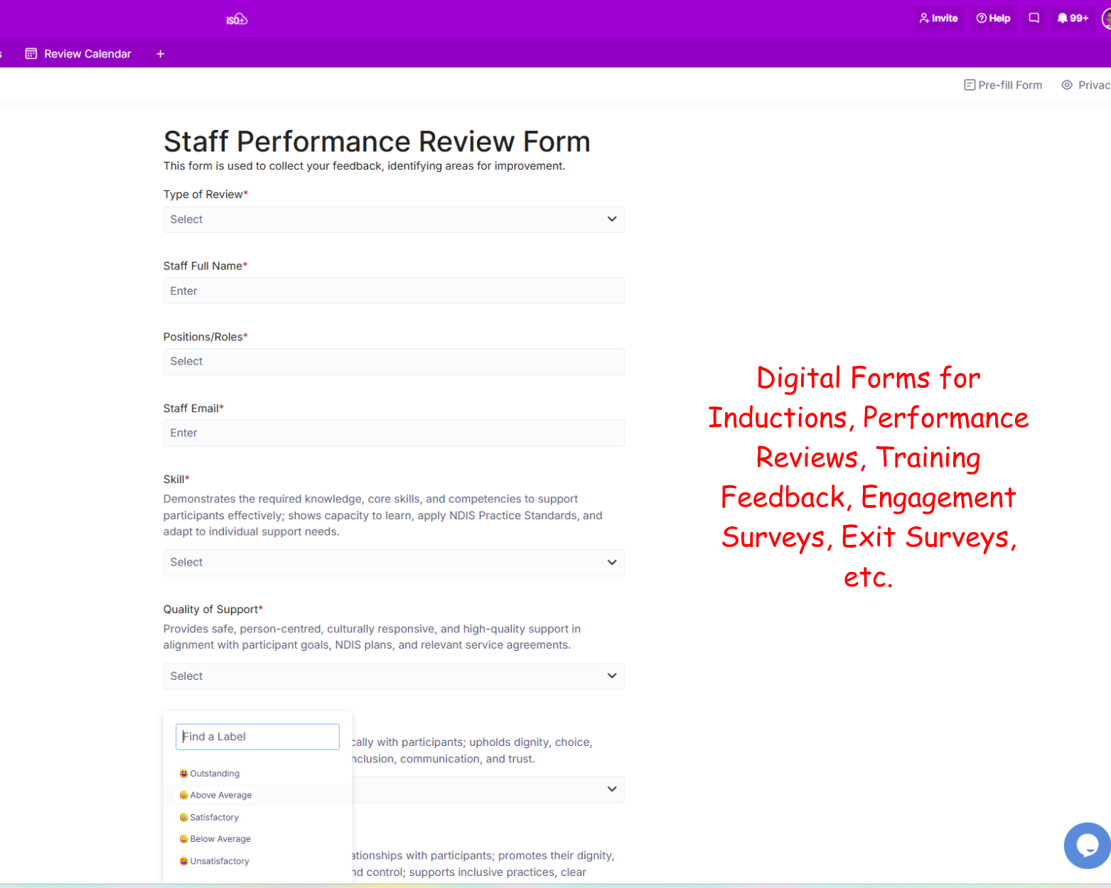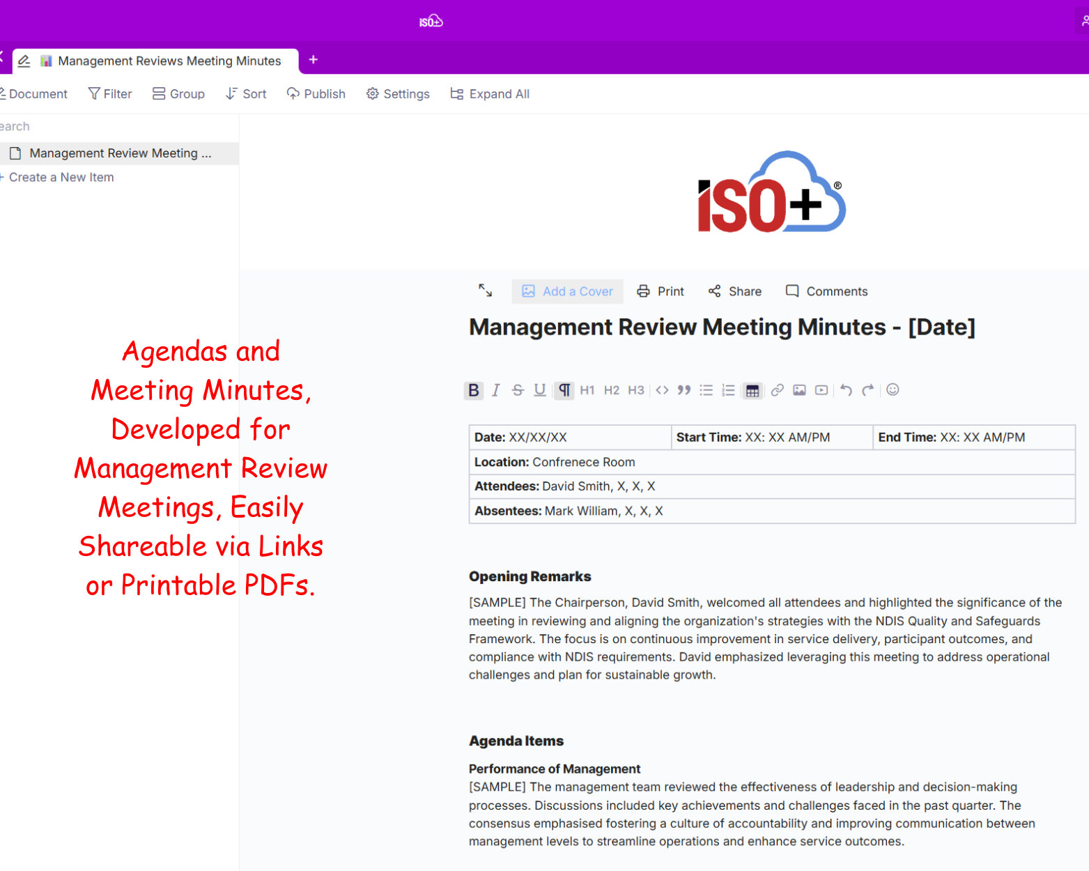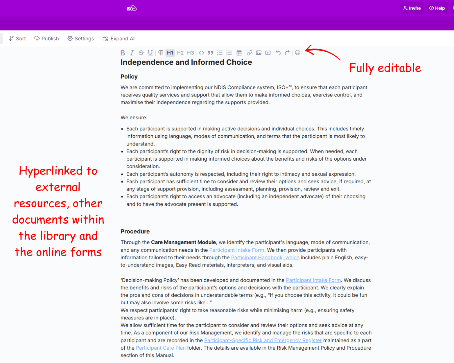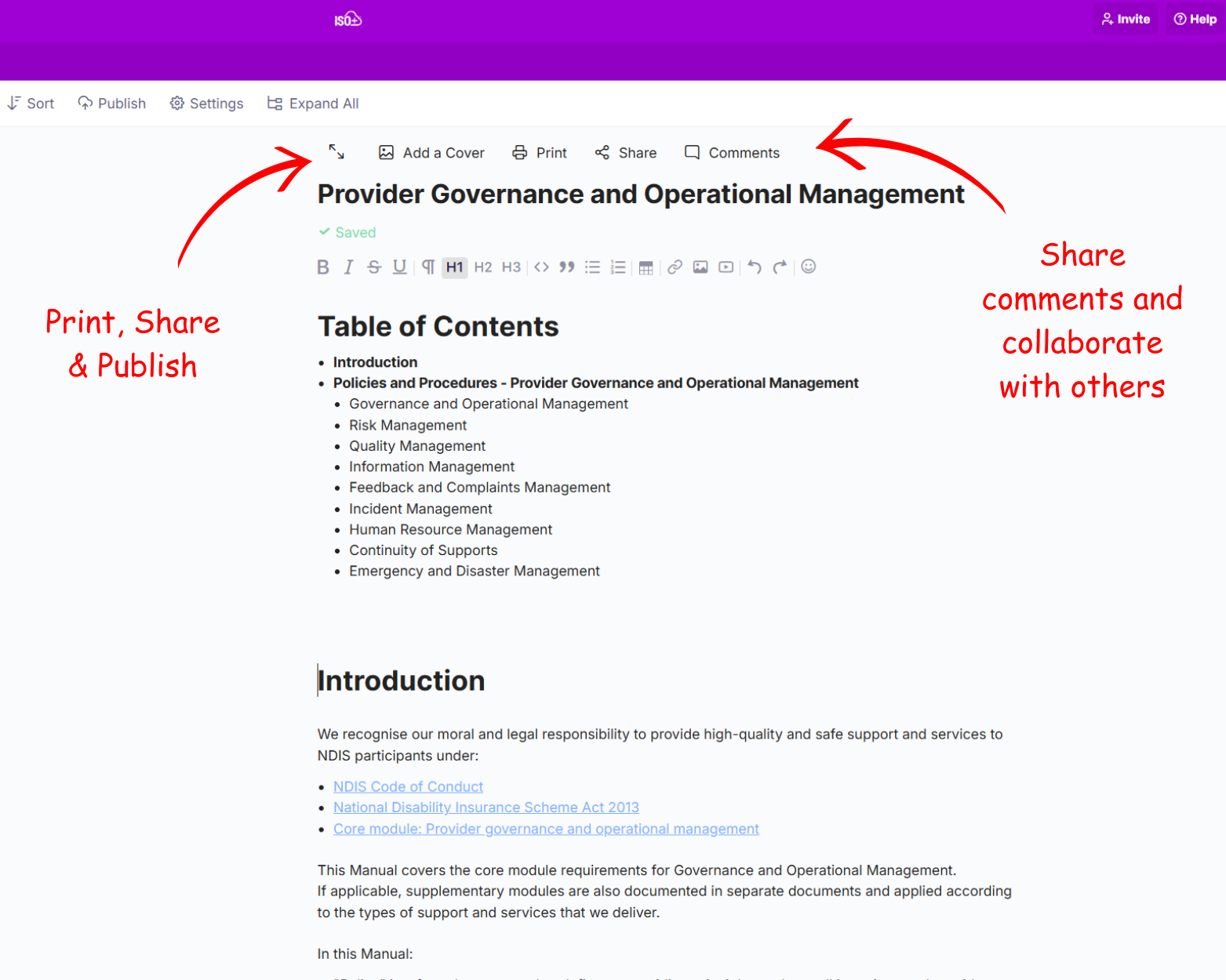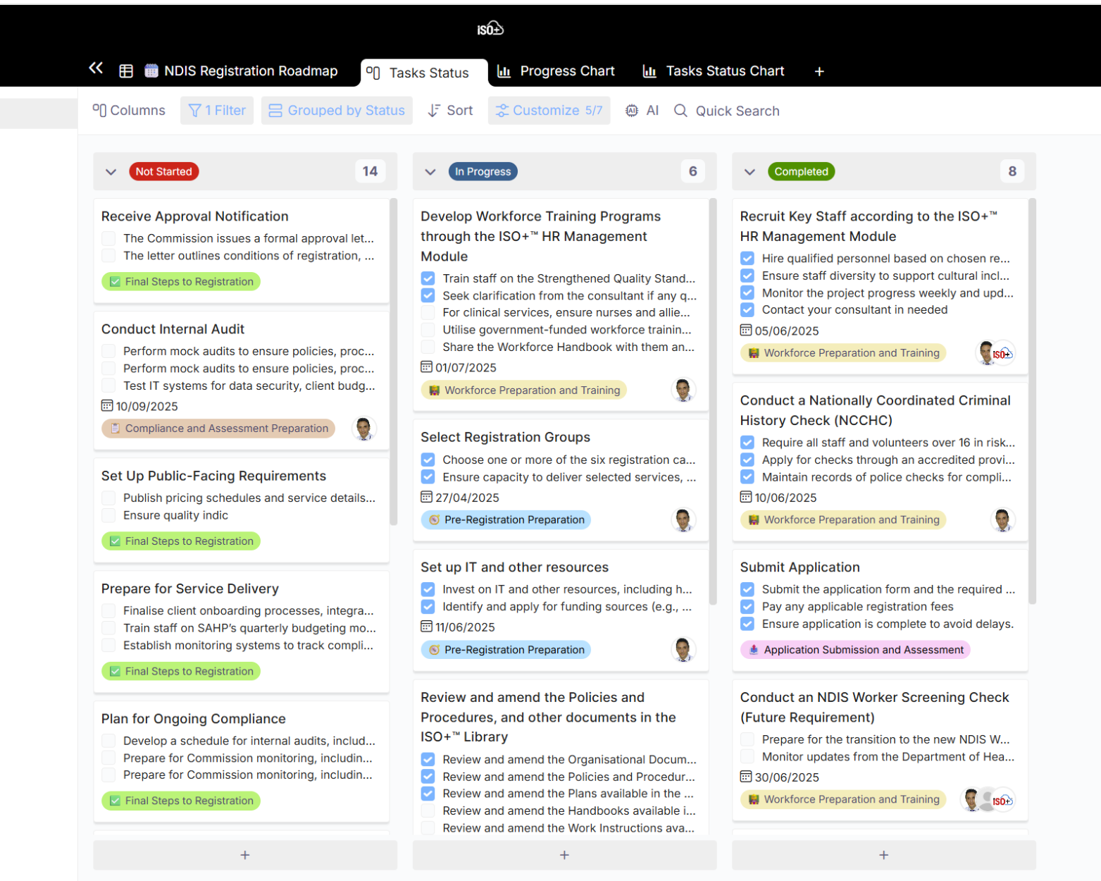 ISO+™ is an all-in-one, flexible, customisable and versatile software solution designed to streamline the documentation and implementation of NDIS operations for compliance and registration purposes.